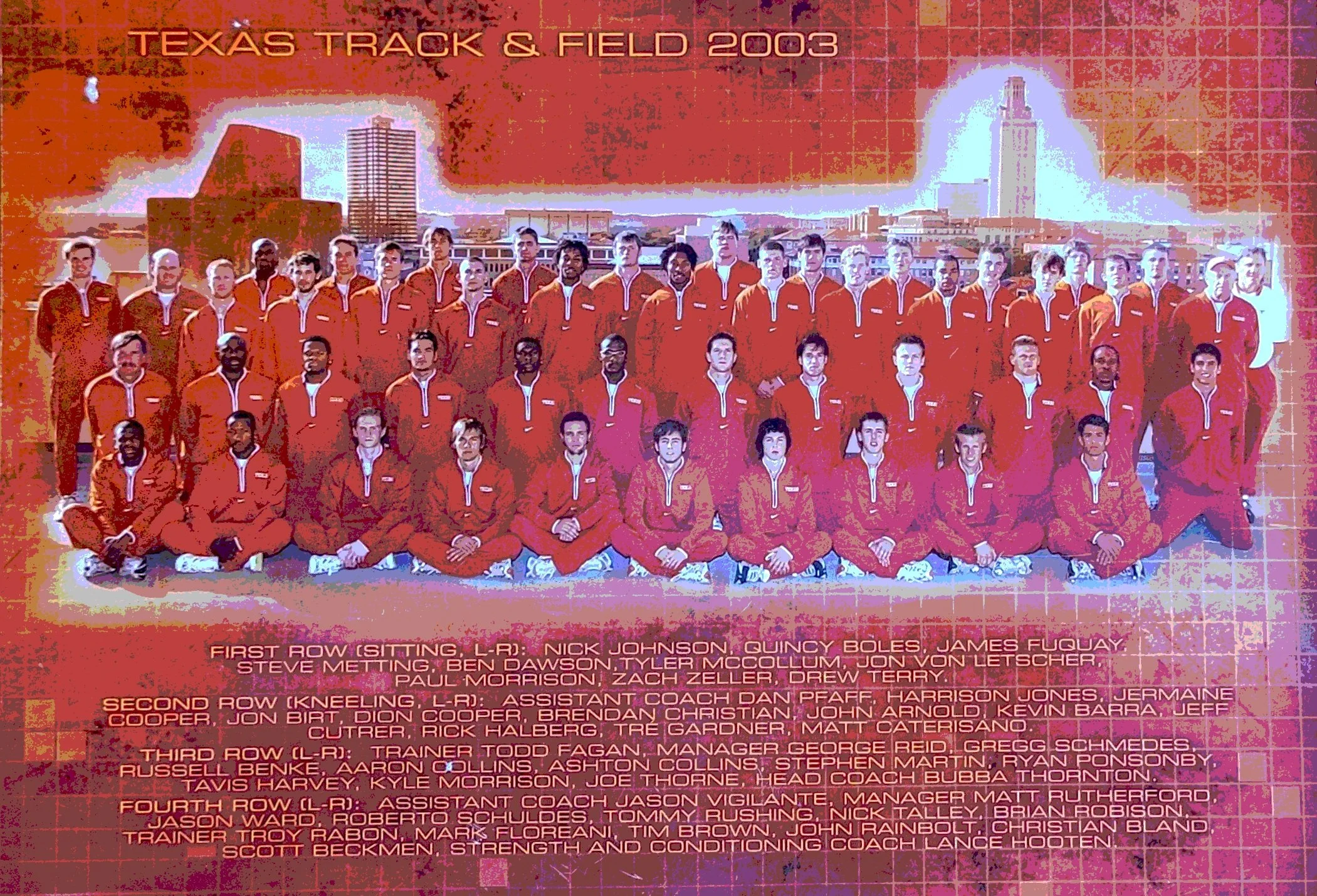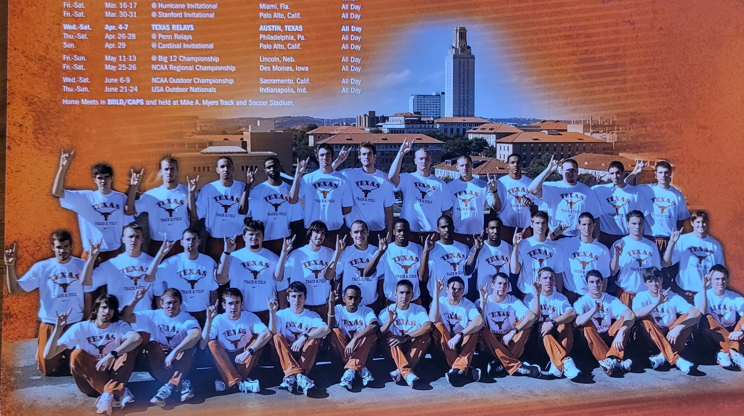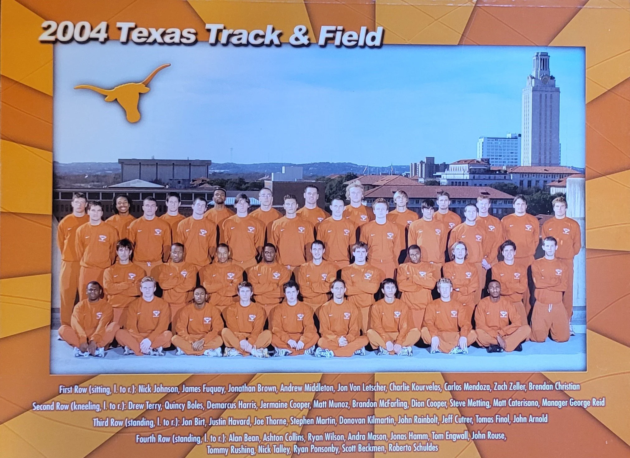 2004- Big 12 outdoor- Horns place 4th with a strong showing on the last day with 5 first-place finishes.