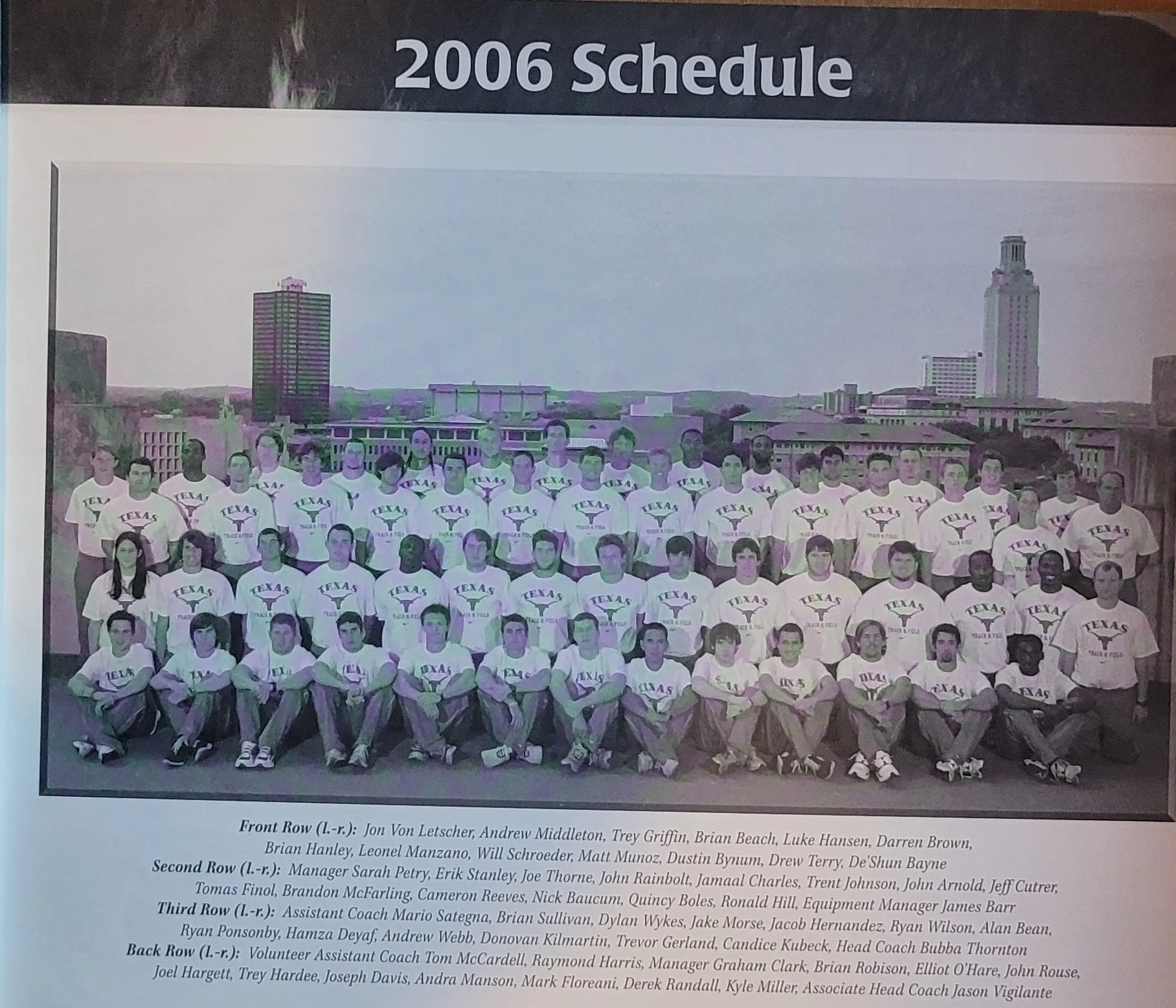 2006 – NCAA Midwest Regional outdoor meet- Horns receive 9 NCAA automatic bids in 8 events and win the regional title. Brian Robison breaks the school record in the shot put and wins the event. Trey Griffin, Ronald Hill, Jamaal Charles and Quincy Boles win the 4 x 100 relay. Andra Manson sets a new NCAA Midwest Regional meet record in the high jump. Leonel Manzano won the 1500 meter event.