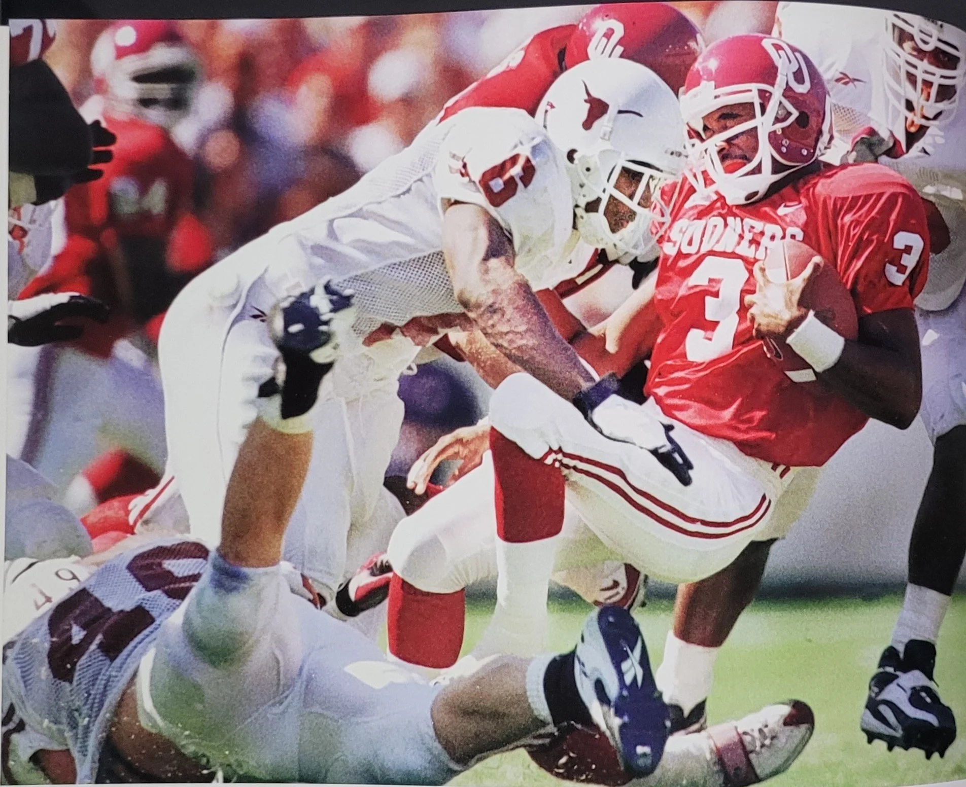 Against O.U Roy Williams, B.J. Johnson, Sloan Thomas made zero touchdowns against O.U. Cedric Benson made one touchdown, but he never rushed more than 100 yards in a single game. Chris Simms had eight interceptions and zero touchdowns against O.U.