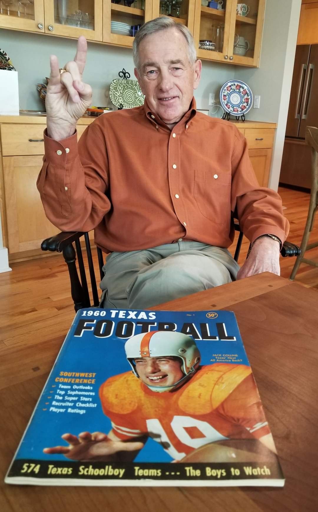 One of Collins’ most recognizable moments followed when he became the first person featured on the cover of Dave Campbell’s Texas Football Magazine in 1960. That season, Collins was third on the team in rushing with 238 yards and tied for the lead with three rushing touchdowns. He also continued to contribute to all other facets of the game with a receiving touchdown, a touchdown pass, returning kicks and playing defense, where he notched an interception and a fumble recovery. The Longhorns went 7-3-1 with all three defeats by a touchdown or less, including two by just one point against Nebraska and Arkansas. Texas beat Oklahoma and Texas A&M that year, along with a win at No. 11 Baylor on the way to the Bluebonnet Bowl, which resulted in a 3-3 tie to No. 9 Alabama.