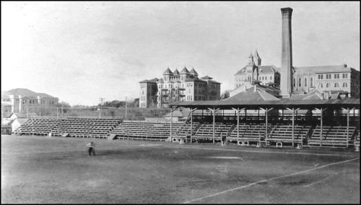 The first Clark Field, operated from 1887 through 1927 at the southeast corner of 24th Street and Speedway configured for a baseball game. The stands were built in sections and movable so during the football season were configured like the image below.