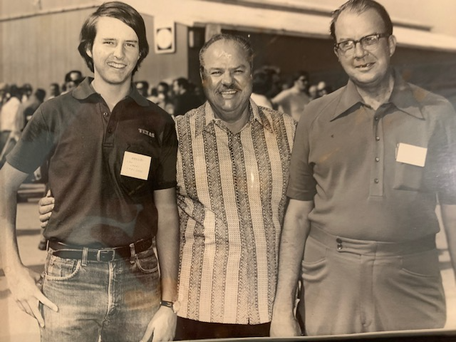 With Texas headed for the playoffs again and me having passed all those freshman classes, I got an extra treat as I moved back to my parents’ San Antonio home for a summer job as a lifeguard (It wasn’t the dream job I had expected; I was merely one of the state’s most lightly-paid babysitters). The Regionals would be hosted by San Antonio. Excellent teams from Trinity and Pan-Am (now known at UT-RGV) would face off against UT in a three-team, double elimination tourney at VJ Keefe Field on the St. Mary’s University campus. I vividly recall meeting my Dad before the game, over at the big annual barbecue held by his friend and business associate, Mr. Ray Ellison. I had known Mr. Ellison since I was a kid and had accompanied Daddy to many editions of the barbecue, a couple of times wearing my Little League baseball uniform and getting a strong “pre-game” meal prior to heading to the sandlot.