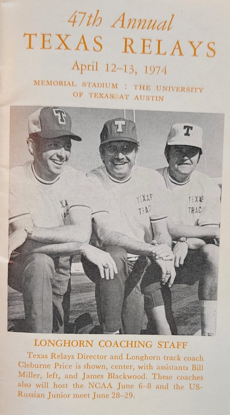 1974 Texas Relays Miller, Cleburne Price, and Blackwood