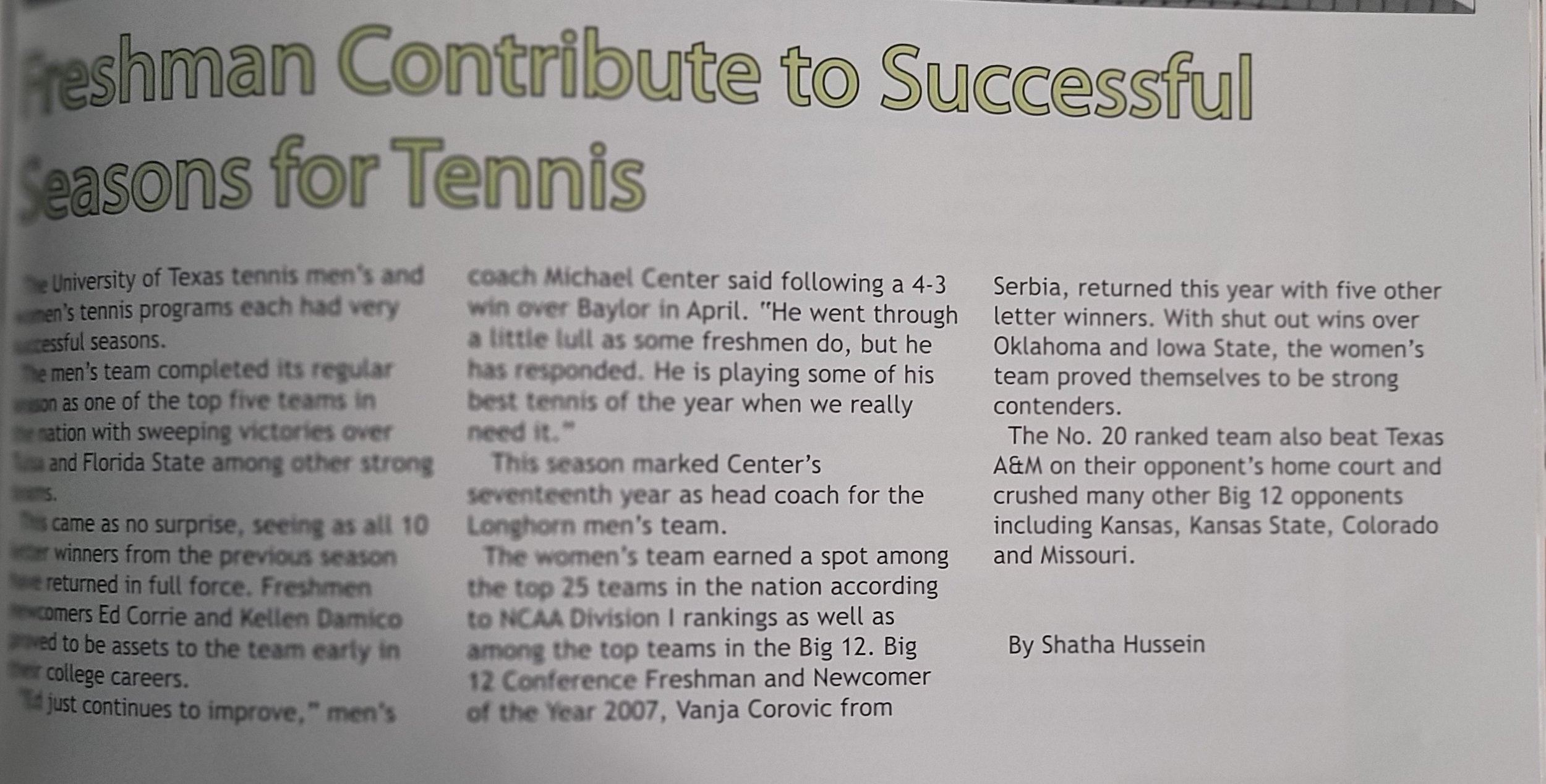 Semi-Finals In Postseason And Highest Ranking (3) In Texas Tennis History.