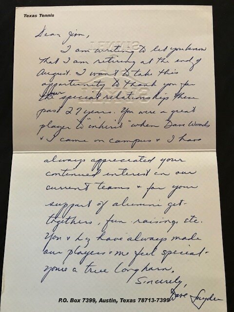 2000 retirement note to Jim Bayless from Coach Snyder
