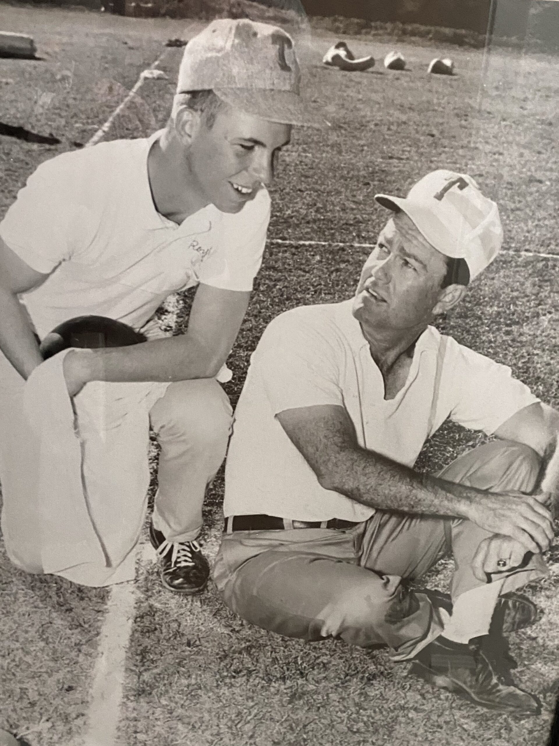 I was handling Coach Royal’s water (a nervous sip between most plays), a senior manager’s coveted task. Having him move a few steps was the only time I ever told that coaching legend what to do! He understood.