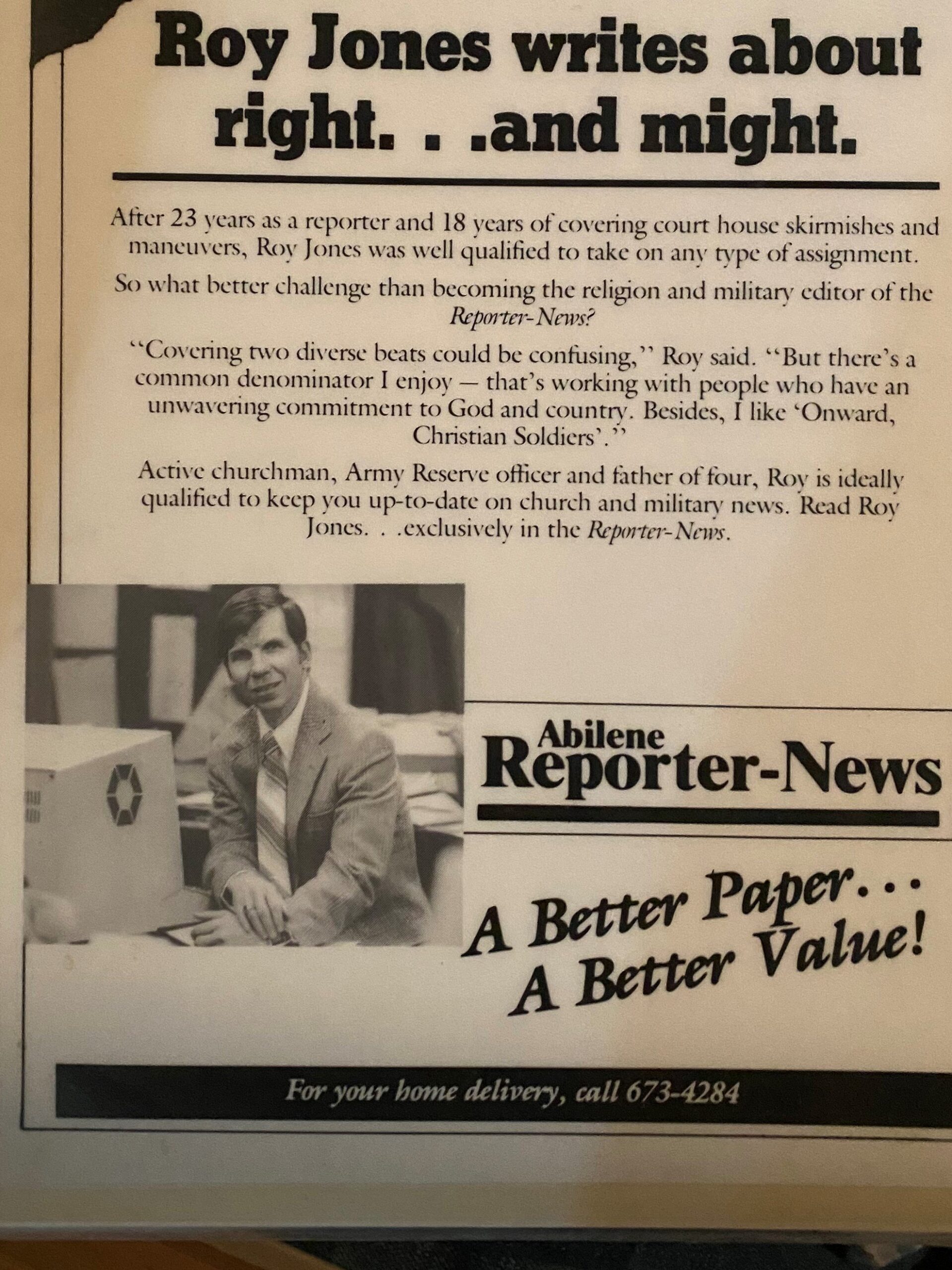 Roy Jones was senior manager of the 1963 national champions who writes frequently about Longhorn football. The retired newspaper reporter/editor, Army Reserve officer and state employee lives in Abilene.