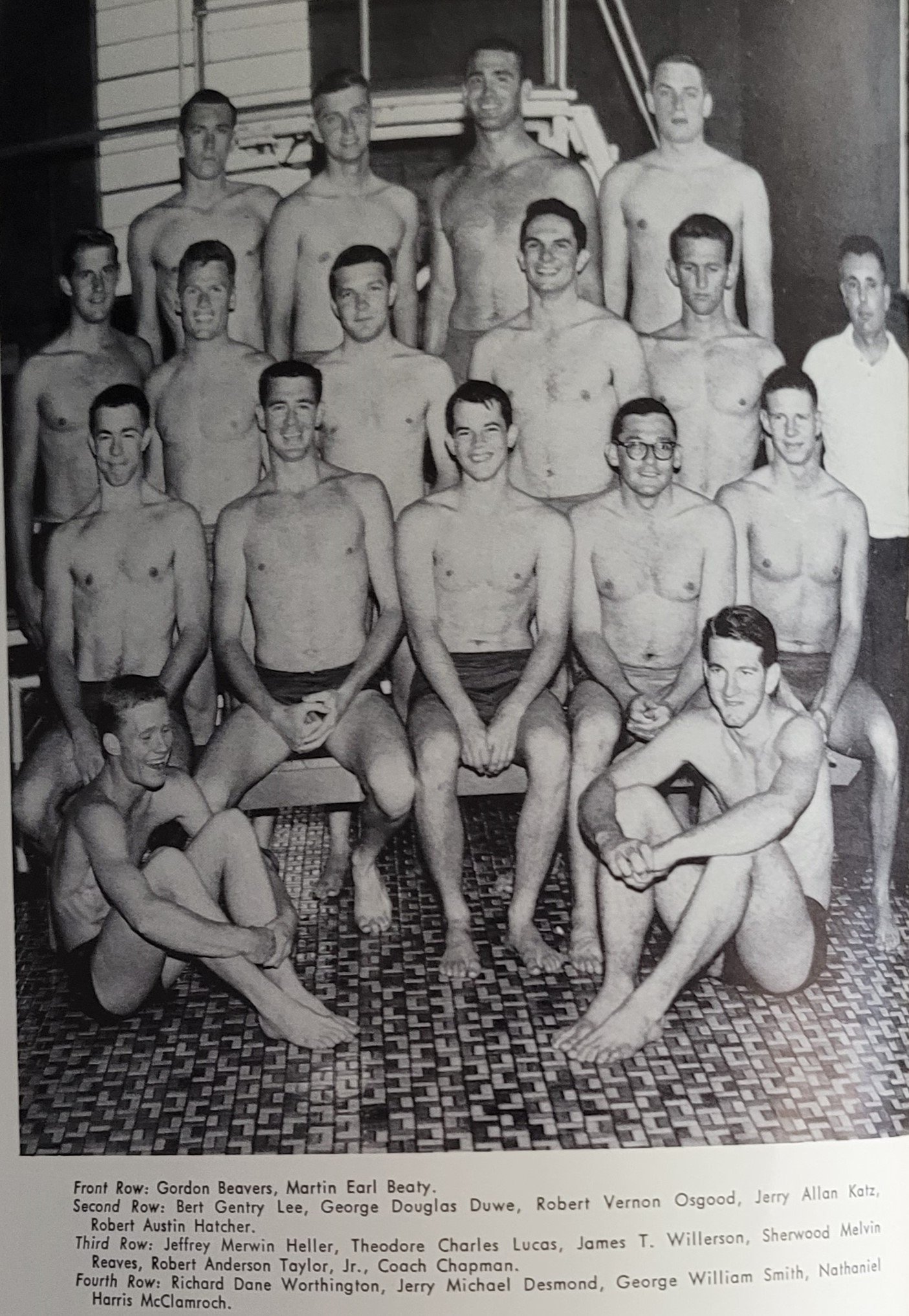 1960-1961 front- Beavers, beaty- second- Lee, Duwe, Osgood, Katz, Hatcher- 3rd- Heller, Lucas, Willerson, Reaves, Chapman- 4th_- Worthington, Desmond, George Smith, McClamroch