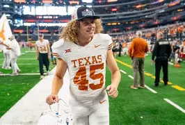 He missed his last two kicks in an otherwise fine Texas career,. One, a 48-yard attempt, came with 1:39 left in the quarterfinal Peach Bowl, the score tied. Then wildly enough, given a second chance moments later, Bert missed a 38-yarder. That one would have “walked it off” for Texas at the end of regulation. The Longhorns survived anyway, thanks to a now legendary 4th-and-13 TD strike from Quinn Ewers to Matthew Golden, then a follow-up Ewers scoring pass to TE Gunnar Helm. Auburn had to be the most relieved person in Mercedes-Benz Stadium.
