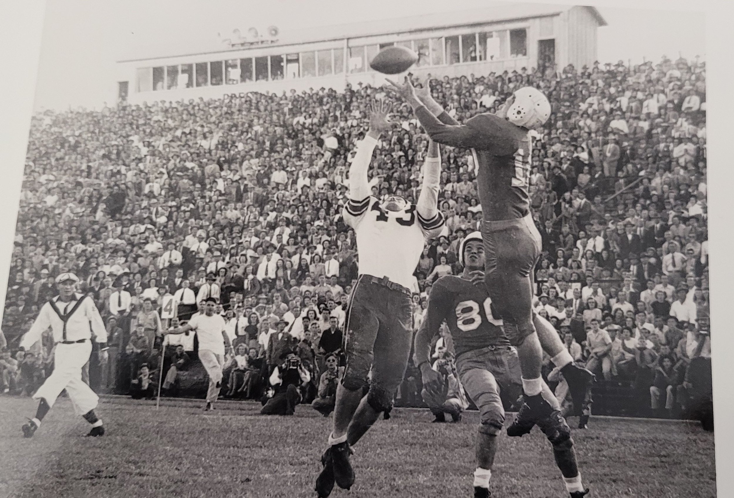 1946 Jimmy Canady goes up for pass – #80 is Max Bumgardner
