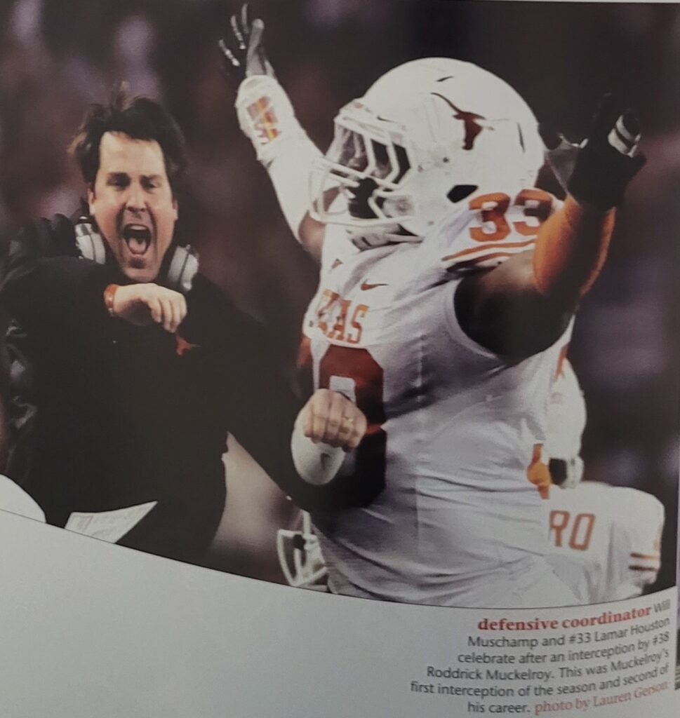 A defensive coordinator change occurs in the 3rd game of the season. A backup quarterback gets a new life and a chance to play. Even with injuries to the kicker, a defensive leader, and two running backs, the Horns remained in the hunt for the Big 12 championship.