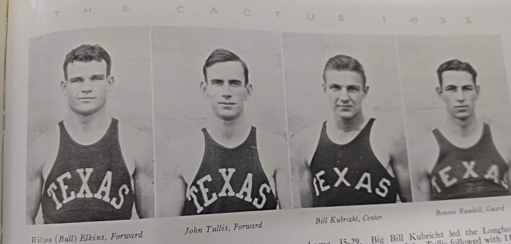 Two football players- Clyde Littlefield and Gus “Pig” Dittmar- led the team, and Littlefield is the first Longhorn basketball player named as an All-American.