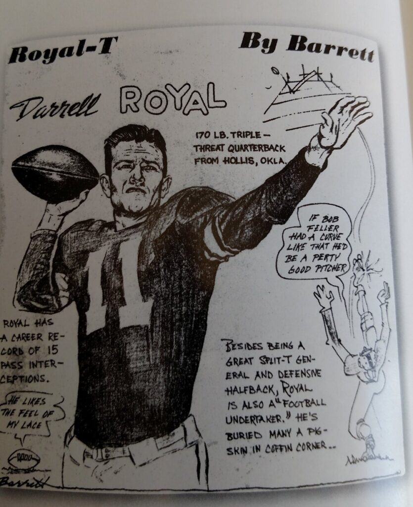 I’m sure he never remembered recruiting me and was being his usual gracious self. But he remembered Larry Webb, who played for him, and told me where he was employed and other details. I realized Coach Royal was concerned about his former players.