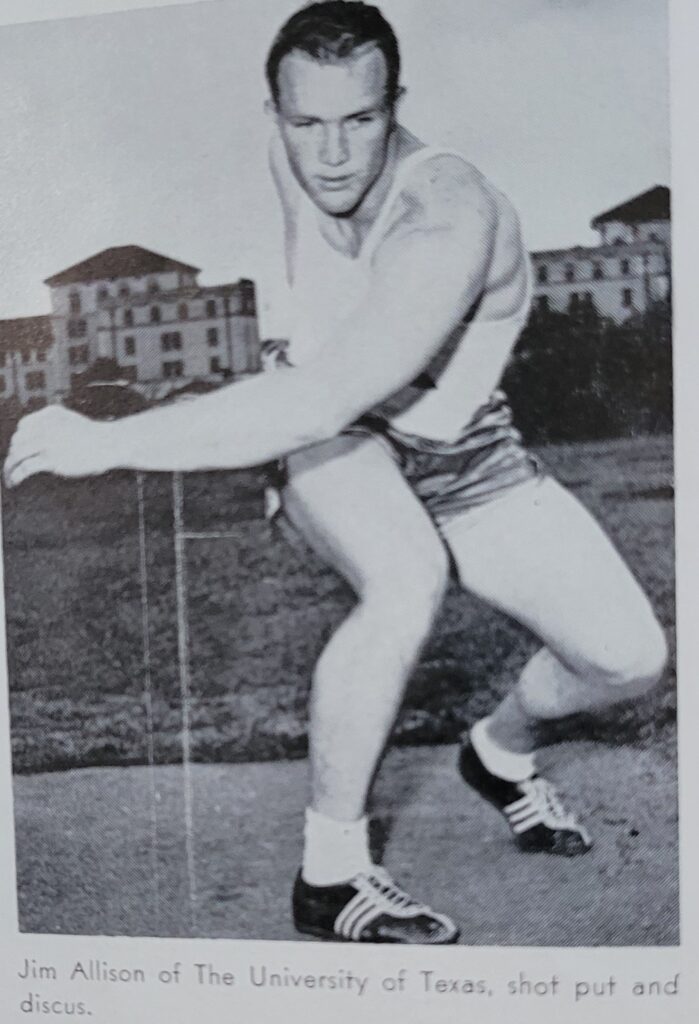 For the first time since 1930, the Texas track team failed to win a single event. Jim Allison was second in the shot put and javelin. Ralph had a bad day.