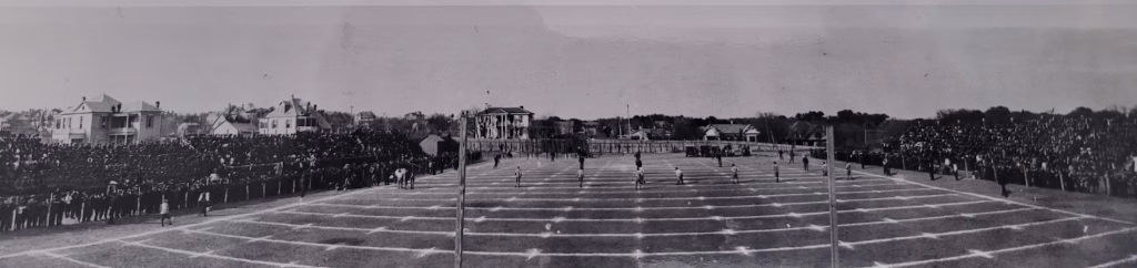 Over a dozen UT students formed a football team to compete against a Dallas club that had played for over a decade. The boys from Austin triumphed with a score of 18-16, marking the beginning of “Varsity” football. The nickname “Longhorns” would not be adopted until 1903. During that inaugural season, Texas faced the Dallas Athletic Club again and played the San Antonio Town Team twice.