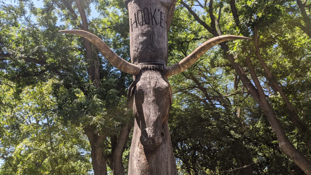1955 is the Beginning of Big Bertha and the Hook ’em Horns sign. Harley Clark (far right in photo) says he was inspired by a sign the Italians used that looked like a stylized longhorn with two protruding fingers representing the horns.