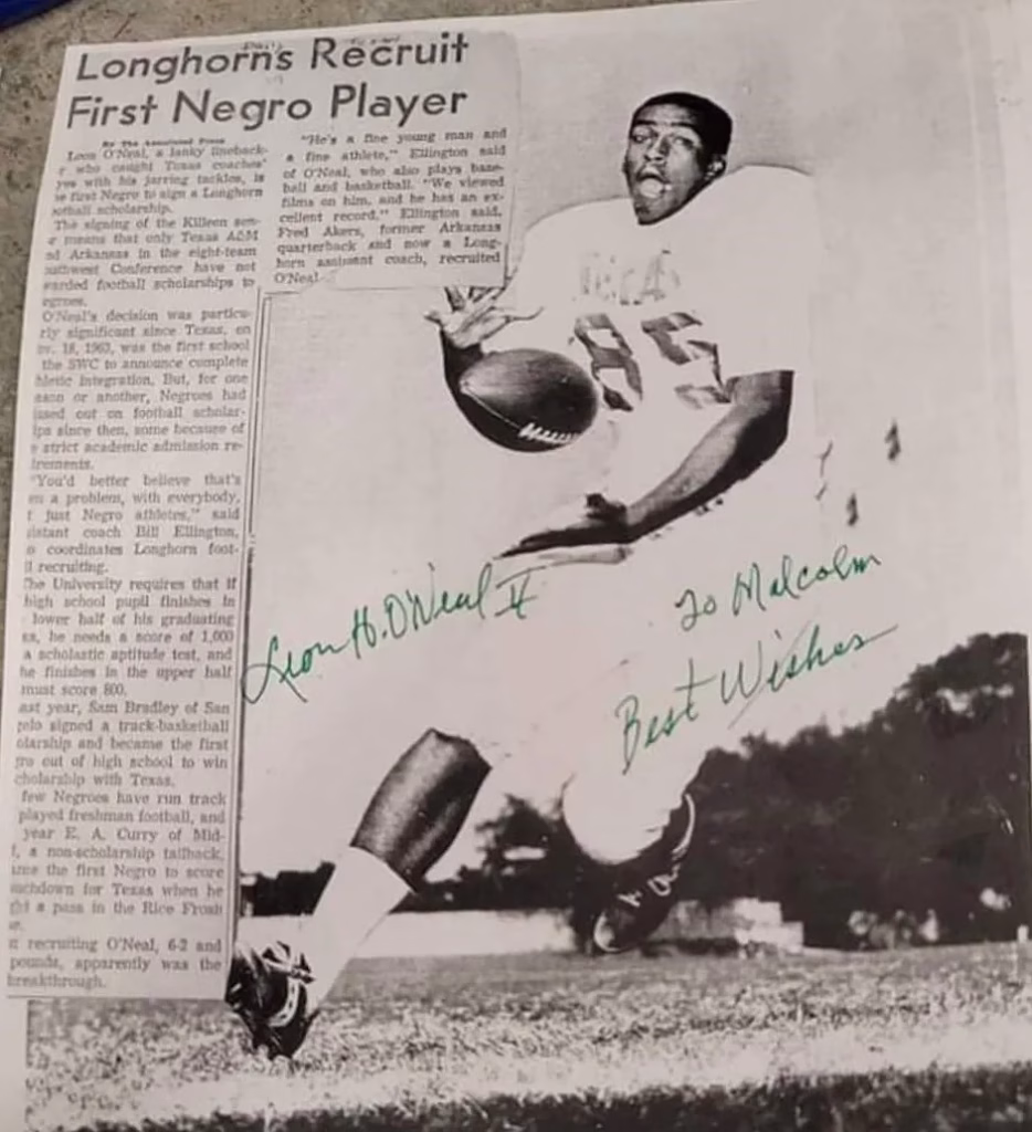 In February 1968, news articles on college football signings listed Bolton as a linebacker. Of the Longhorn signees was Leon O’Neal from Killeen, who became the first black student-athlete to receive a football scholarship from Texas.