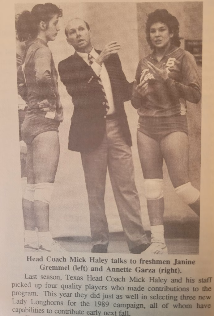 The University of Texas women’s volleyball program blossomed into a national powerhouse in just two years under head coach Mick Haley. In 1981, Mick Haley led the Longhorns to an Association for Intercollegiate Athletics for Women (AIAW) national title.